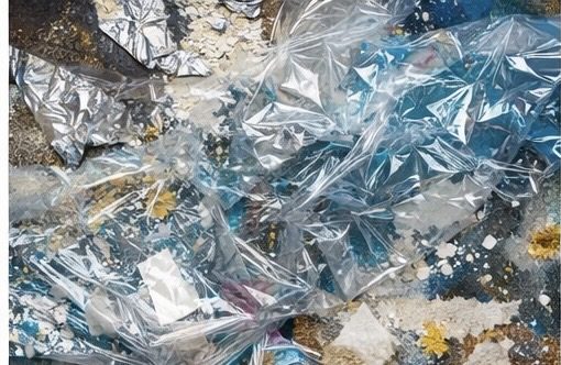 Klarsichtfolie nutze ich geknüllt, gedrückt oder vorsichtig wieder abgezogen. Dabei entstehen zarte Schicht Effekte, Übergänge und Strukturen, die Tiefe erzeugen und dem Bild etwas Leichtes, Schwebendes verleihen.
