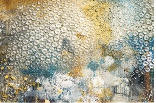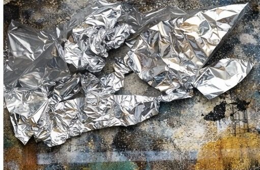 Silberpapier & Verpackungsmaterial, Glanz, Licht, Dynamik im Bild. Silberpapier und Verpackungsmaterial bringen Lichtreflexe, Bewegung und eine besondere Spannung ins Kunstwerk. Durch Knüllen ,reißen oder sanftes Andrücken entstehen organische Strukturen, die dem Bild Tiefe und Lebendigkeit verleihen. Je nach Lichteinfall verändern sie ihre Wirkung-mal ruhig, mal kraftvoll, mal geheimnisvoll.